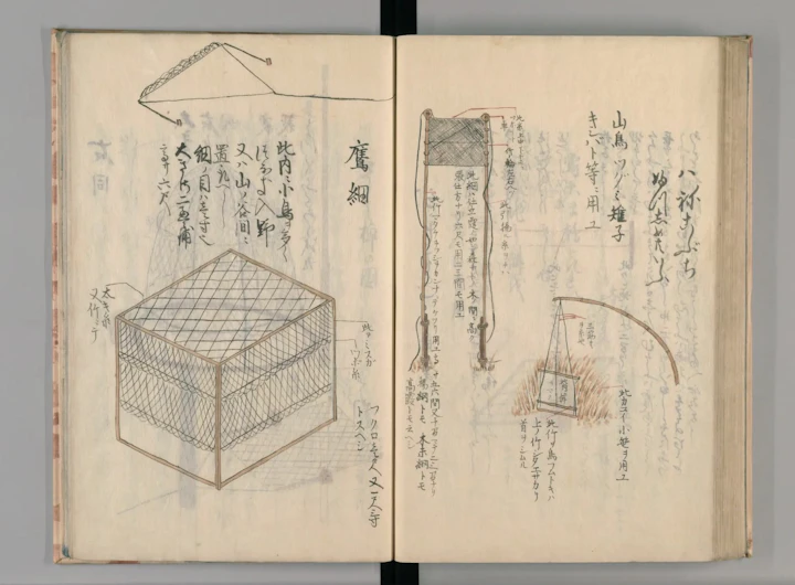 さらに、鳥を捕まえる方法も書かれています。ヤマドリやツグミ、キジを捕まえるための道具のようです。捕まえて飼ったり、売ったりしていたのでしょう。